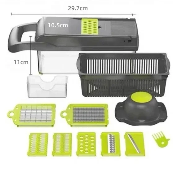 أحدث قطاعة الخضروات متعددة الوظائف هي أداة مطبخ عملية. توفر مفرمة الخضروات وظائف متعددة حيث يمكنها التقطيع أو التقطيع إلى مكعبات أو شرائح أو بشر. إن قطاعة البصل مصنوعة من مواد ممتازة مثل شفرات الفولاذ المقاوم للصدأ 420 عالية الجودة ومادة ABS الصالحة للطعام. تم تجهيز صندوق تخزين، مما يسهل تخزينه ويضمن عدم تعرضك للأذى عند إزالة الشفرات أو وضعها.